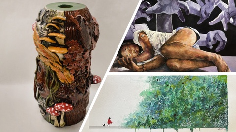 Current Grant Wood Fellows and practicing artists—Rush Baker, Matthew Willie Garcia, and Lyndsey Scott—selected Sherry Tang (Pleasant Valley High School, Bettendorf), Anya Adcock (Ames Middle School, Ames), and Lucas Schnoor (Norwalk High School, Norwalk) as winners for their demonstration of a regional voice and skill.